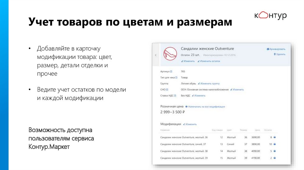 Учет товаров по цветам и размерам• Добавляйте в карточку