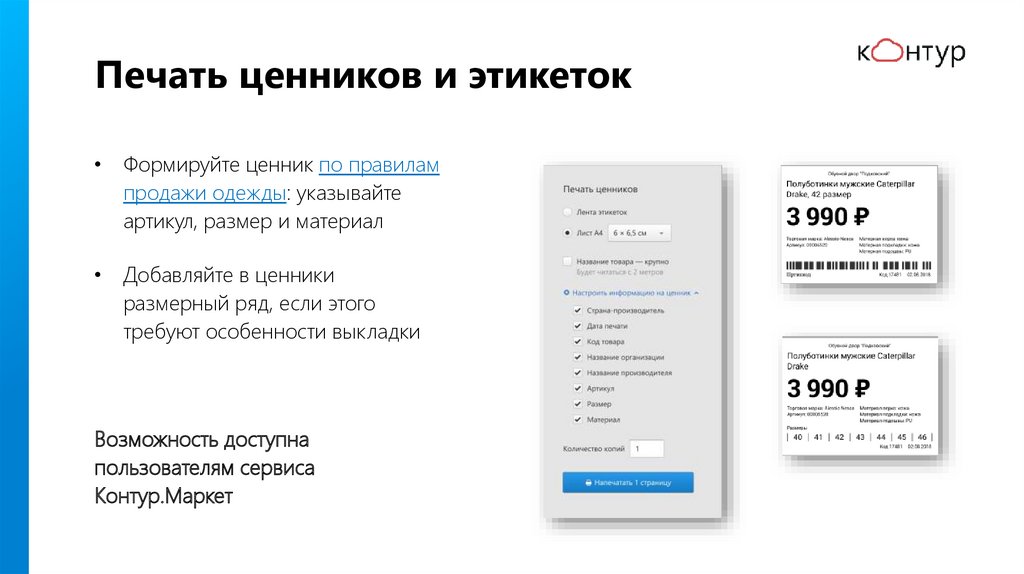 Печать ценников и этикеток• Формируйте ценник по правилам