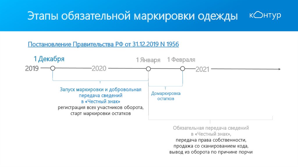 Этапы обязательной маркировки одеждыПостановление Правительства РФ от 31.12.2019 N 1956