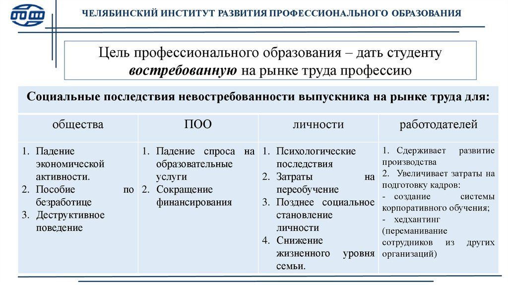 ЧЕЛЯБИНСКИЙ ИНСТИТУТ РАЗВИТИЯ ПРОФЕССИОНАЛЬНОГО ОБРАЗОВАНИЯЦель профессионального образования – дать студенту
