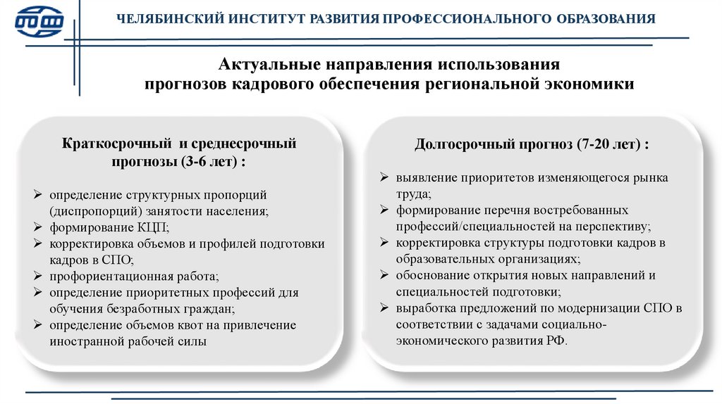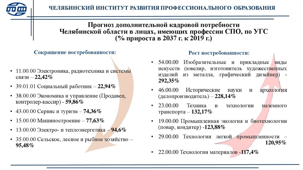 ЧЕЛЯБИНСКИЙ ИНСТИТУТ РАЗВИТИЯ ПРОФЕССИОНАЛЬНОГО ОБРАЗОВАНИЯПрогноз потребности Челябинской области в