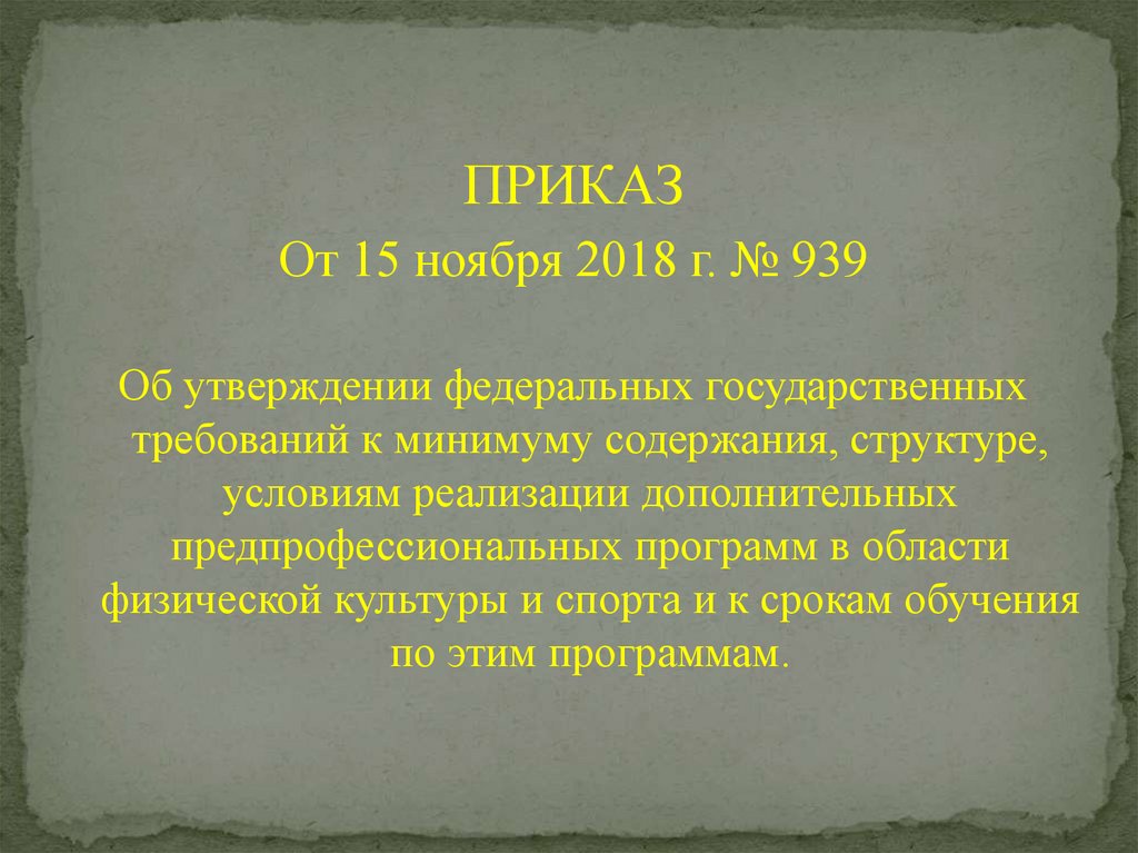 Приказ. От 15 ноября 2018 г. № 939