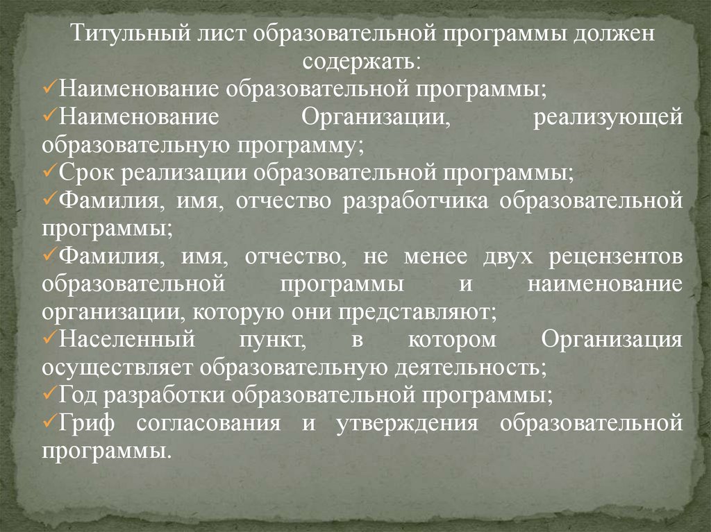 Титульный лист образовательной программы долженсодержать: