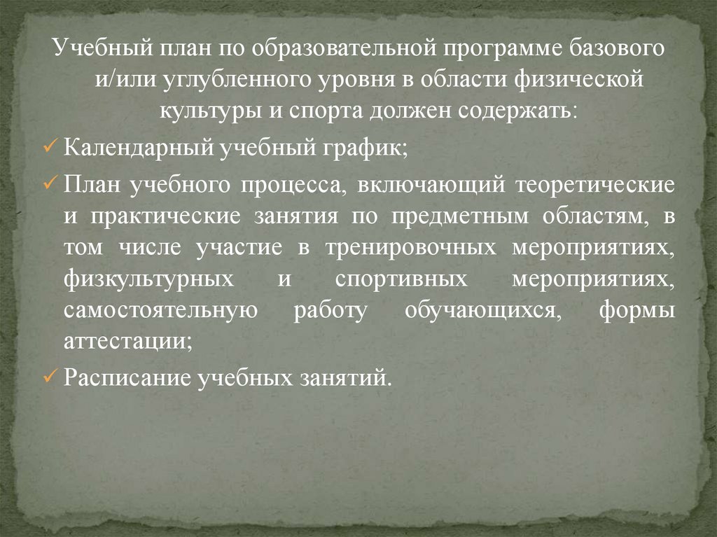 Учебный план по образовательной программе базовогои/или углубленного уровня в области физической