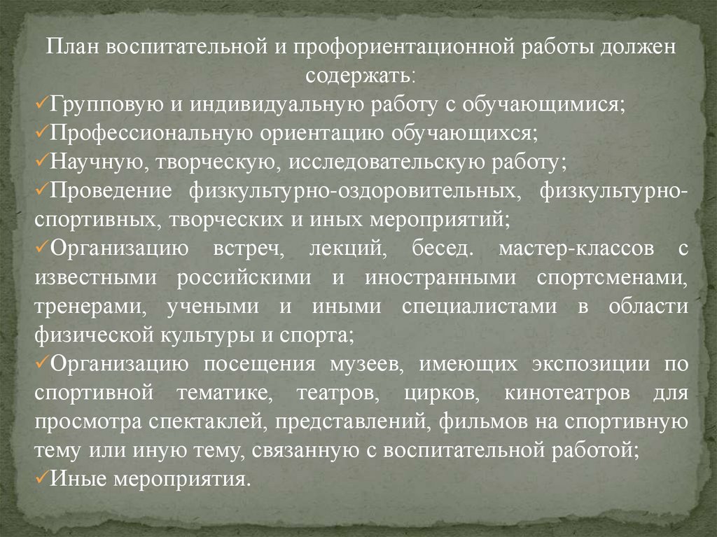 План воспитательной и профориентационной работы долженсодержать: