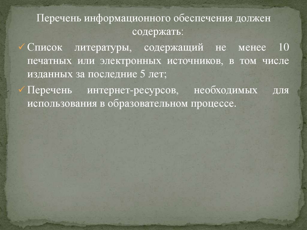 Перечень информационного обеспечения долженсодержать: