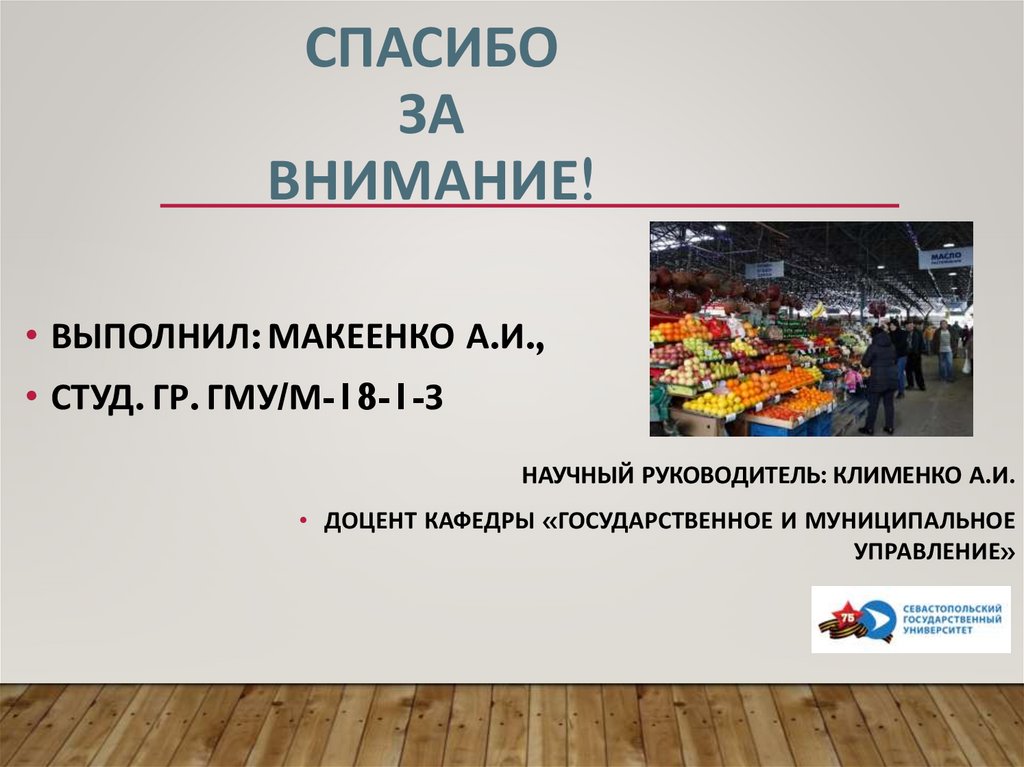 НАУЧНЫЙ РУКОВОДИТЕЛЬ: КЛИМЕНКО А.И.