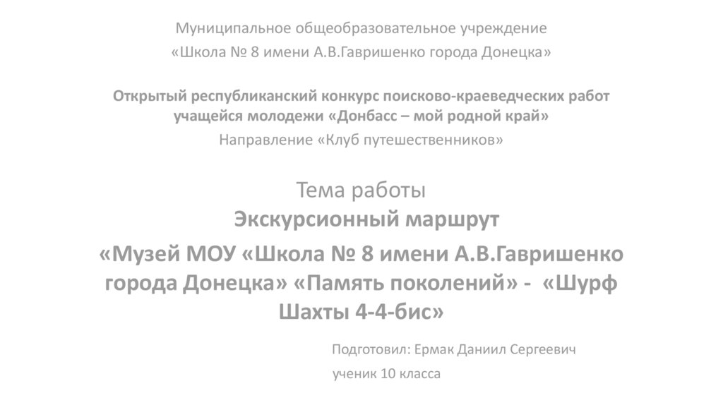 Экскурсионный маршрут «Музей МОУ «Школа № 8 имени А.В. Гавришенко города Донецка»