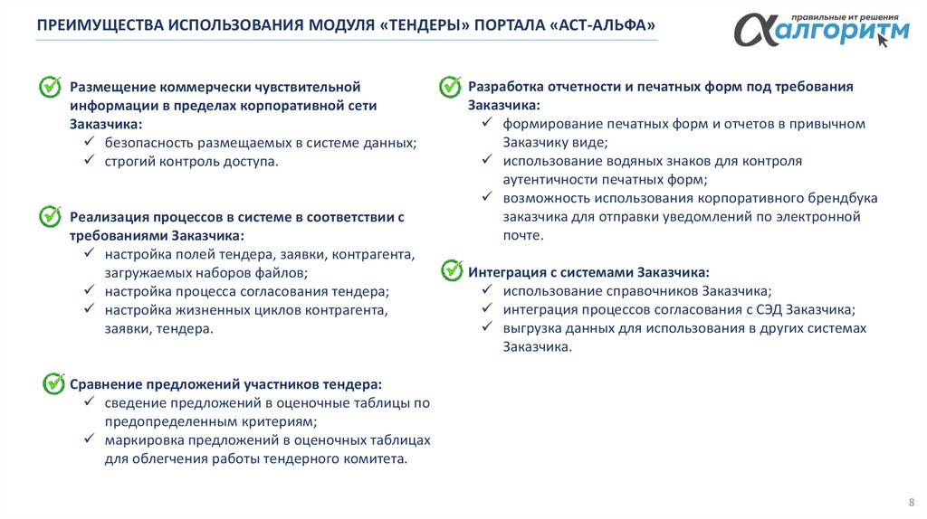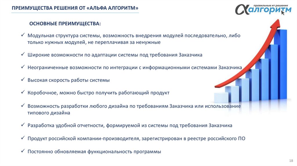 ПРЕИМУЩЕСТВА РЕШЕНИЯ ОТ «АЛЬФА АЛГОРИТМ»ОСНОВНЫЕ ПРЕИМУЩЕСТВА: