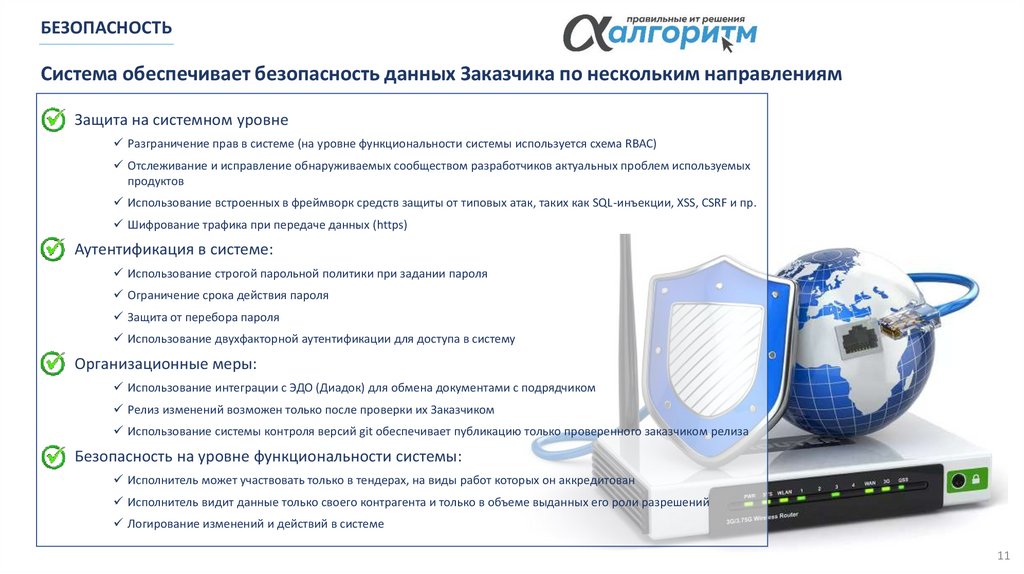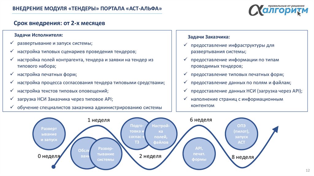 Возможно внедрение модулей в комплексе или по-отдельности, в зависимости от потребностей Заказчика