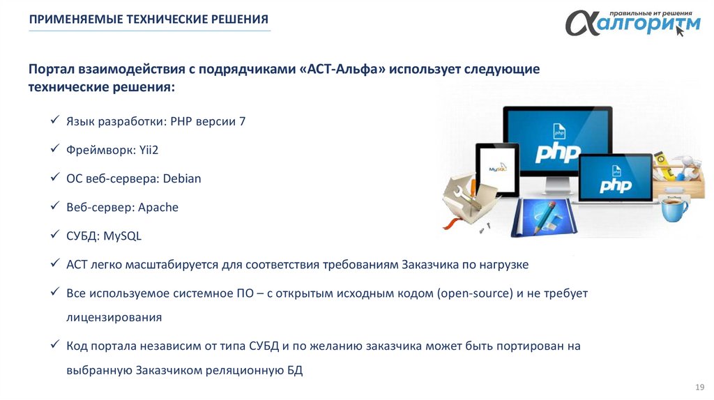 ПРИМЕНЯЕМЫЕ ТЕХНИЧЕСКИЕ РЕШЕНИЯПортал взаимодействия с подрядчиками «АСТ-Альфа» использует следующие