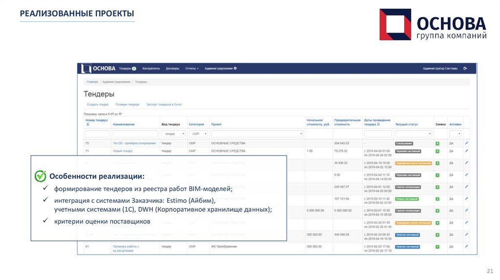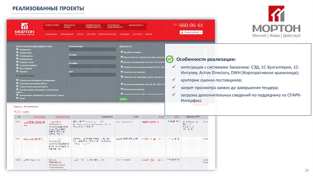 РЕАЛИЗОВАННЫЕ ПРОЕКТЫОсобенности реализации:
