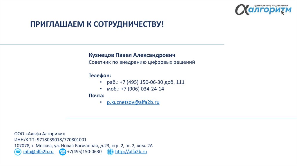 ПРИГЛАШАЕМ К СОТРУДНИЧЕСТВУ!Кузнецов Павел Александрович