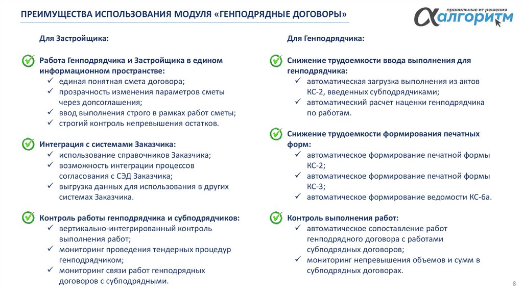 - формирование генподрядных договоров;