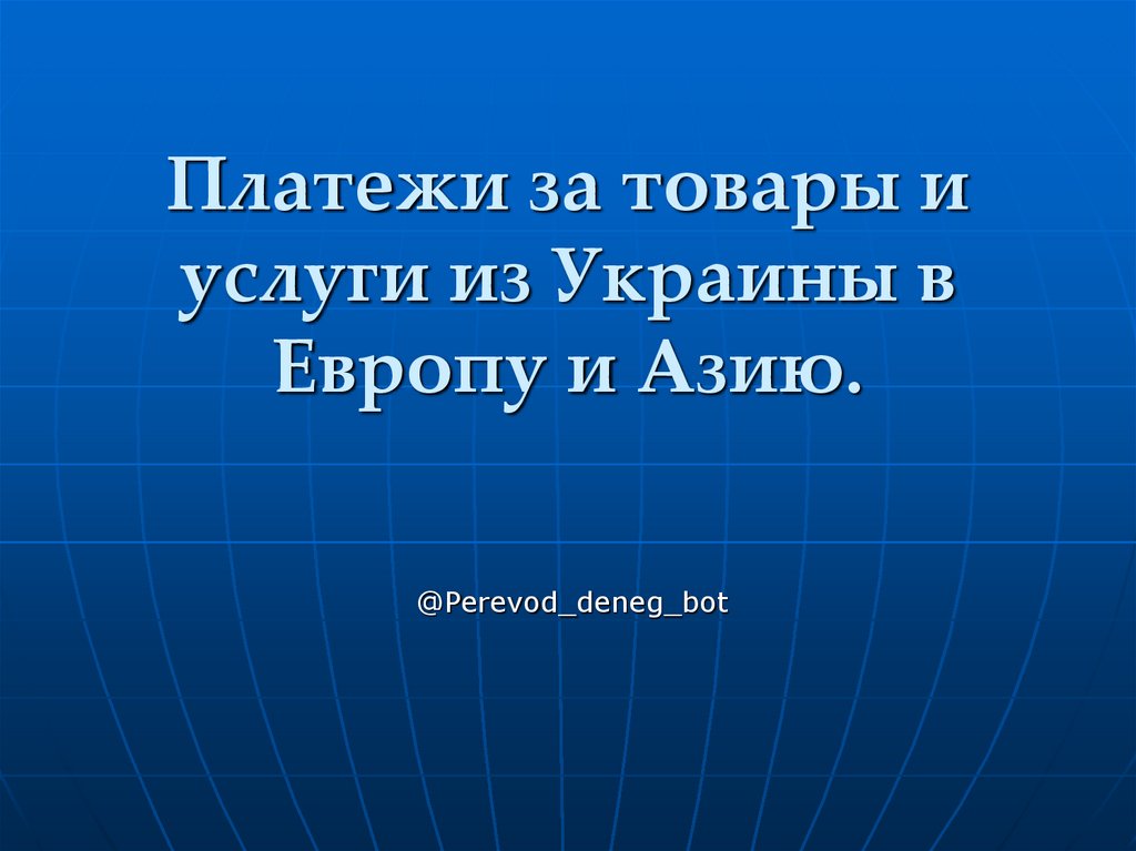 1. Платежи за товары и услуги из Украины в Европу и Азию.