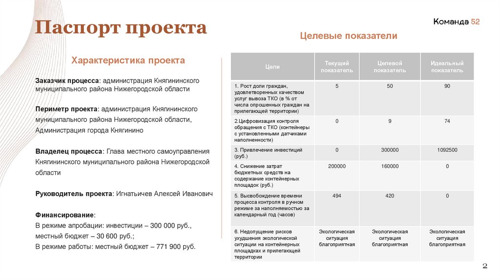 Паспорт проектаХарактеристика проекта