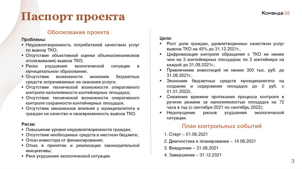 Паспорт проектаОбоснование проекта