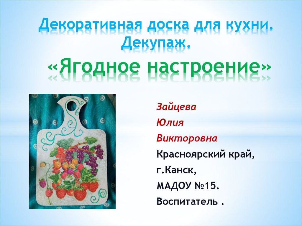 Декоративная доска для кухни. Декупаж. «Ягодное настроение»