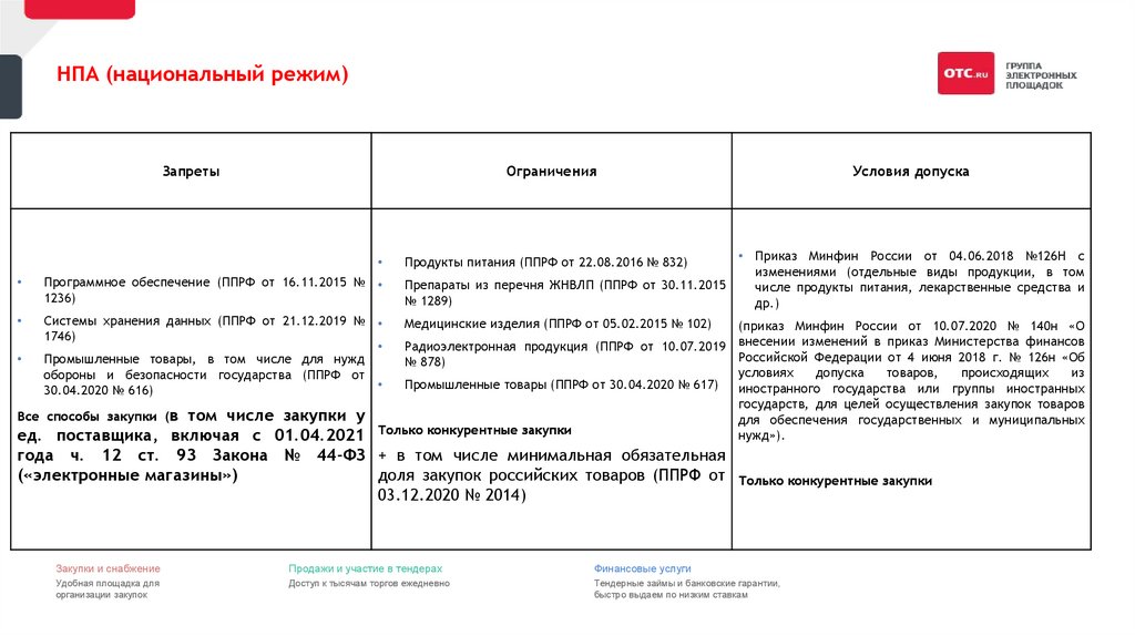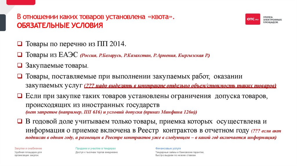 • Условия допуска (может быть допущена иностранная продукция (правило «третий лишний»)