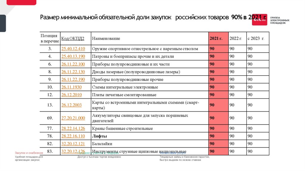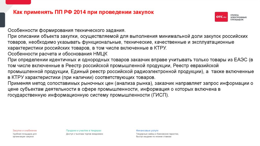 ЗАКУПОК РОССИЙСКИХ ТОВАРОВ, в том числе товаров, поставляемых при выполнении