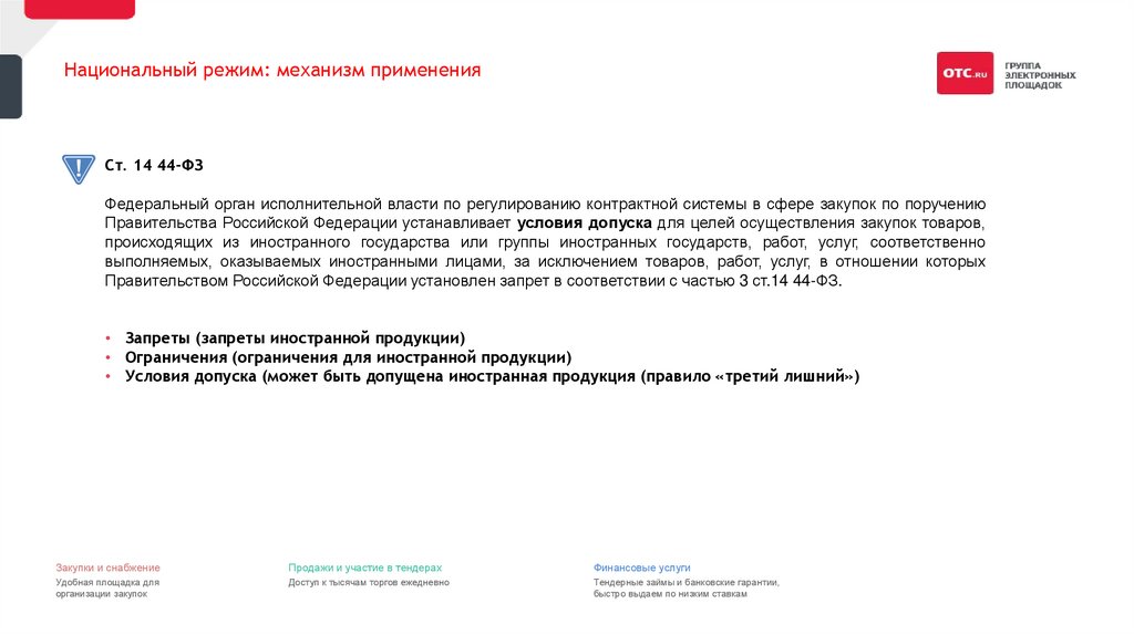 Национальный режим: механизм примененияСт. 14 44-ФЗ