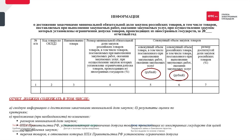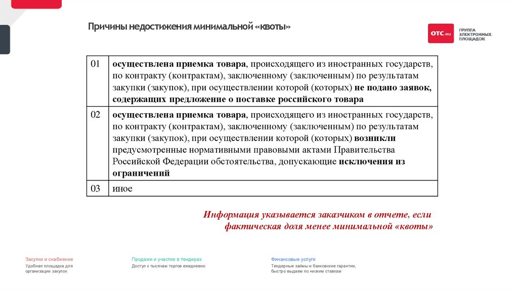 допуска указанных товаров, работ, услуг, включая МИНИМАЛЬНУЮ ОБЯЗАТЕЛЬНУЮ ДОЛЮ