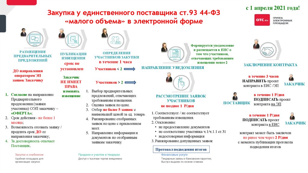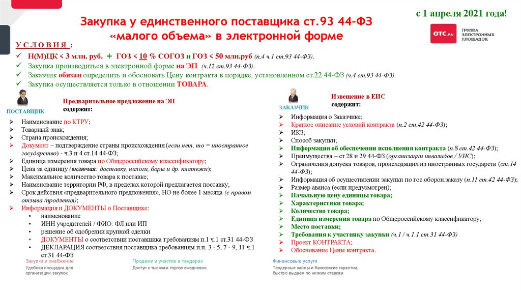 с 1 апреля 2021 года!Закупка у единственного поставщика ст.93 44-ФЗ