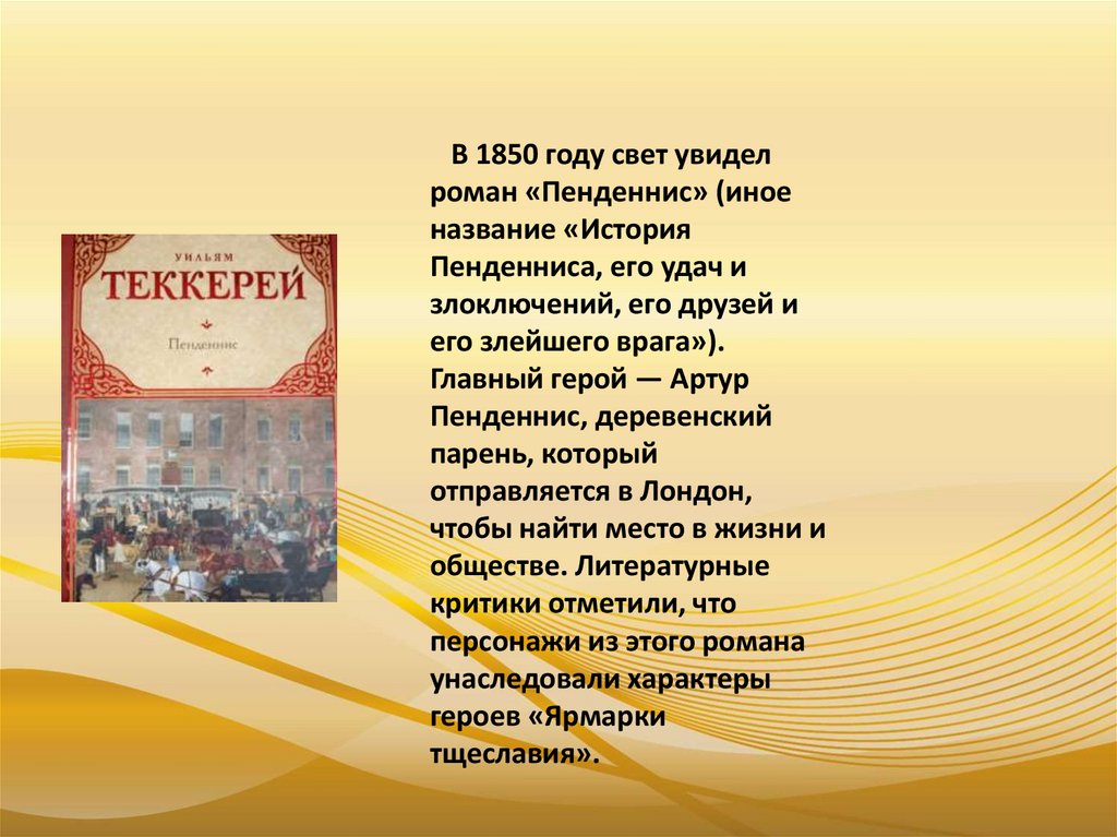 В 1850 году свет увиделроман «Пенденнис» (иное
