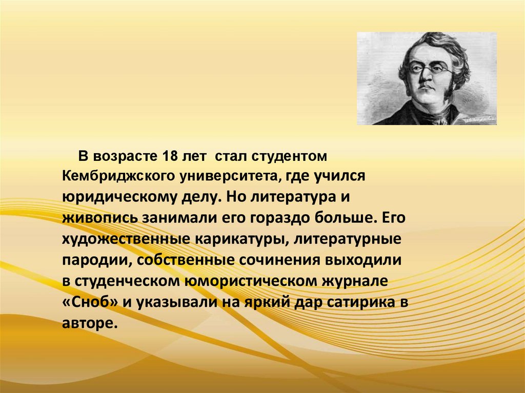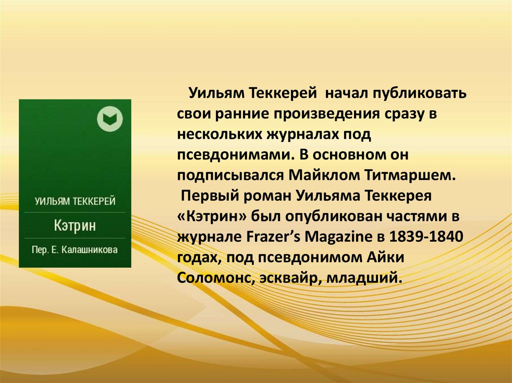 Уильям Теккерей начал публиковатьсвои ранние произведения сразу в