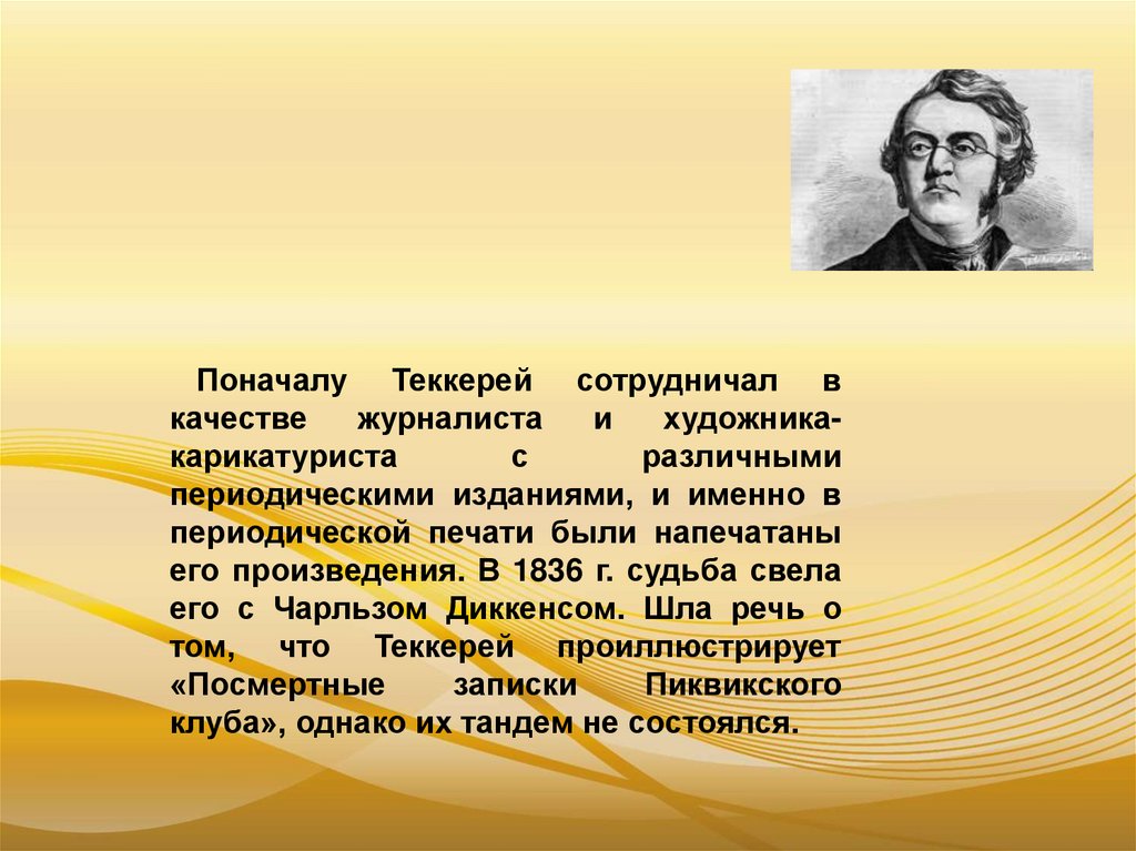 Поначалу Теккерей сотрудничал вкачестве