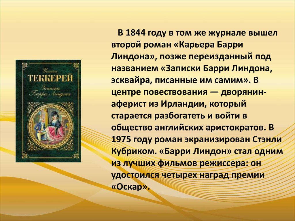 В 1844 году в том же журнале вышелвторой роман «Карьера Барри