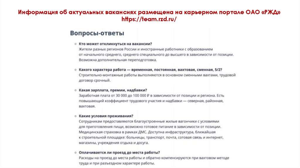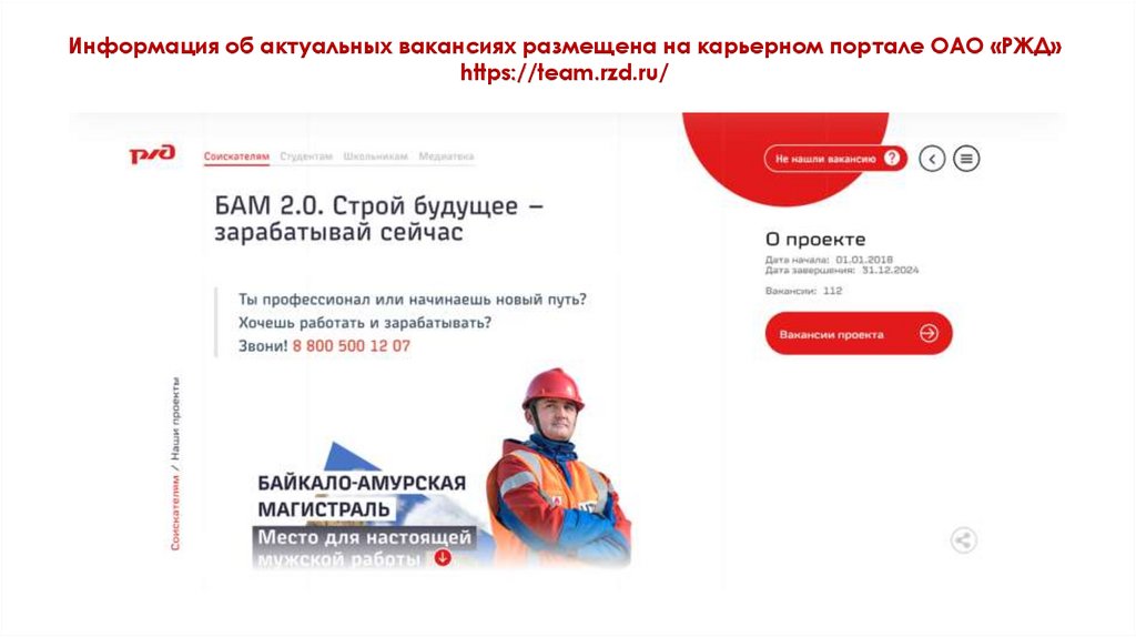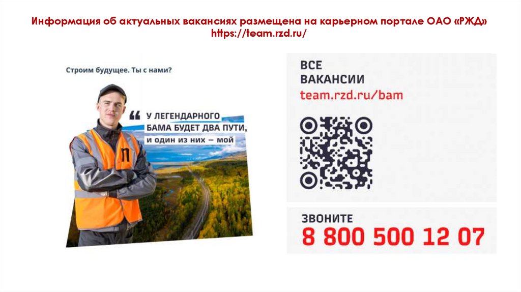 Информация об актуальных вакансиях размещена на карьерном портале ОАО «РЖД»https://team.rzd.ru/