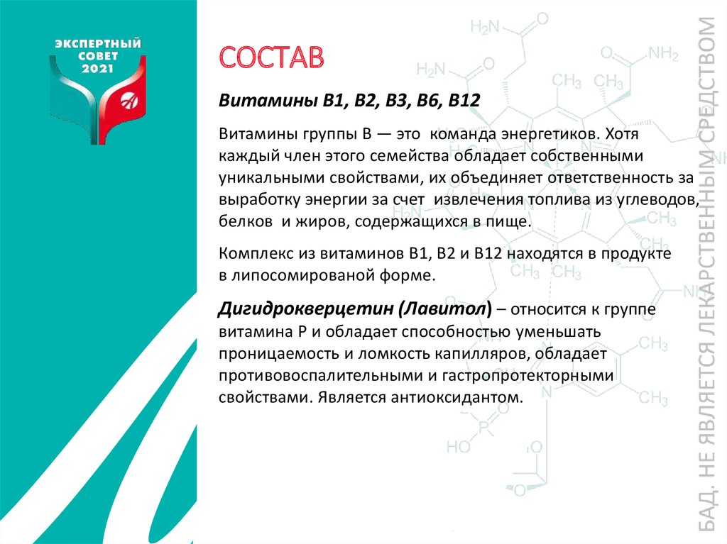 СОСТАВВитамины В1, В2, В3, В6, В12