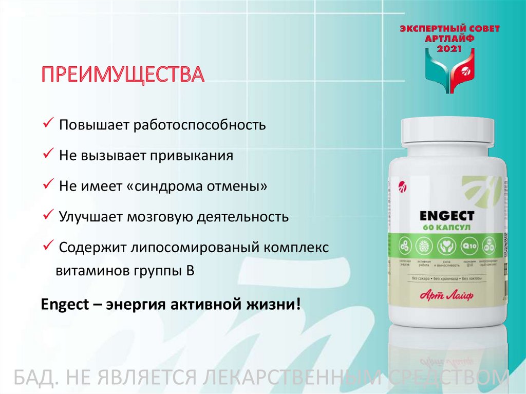 БАД К ПИЩЕ «ЭНЖЕКТ (ENGECT)»• Для повышения жизненной энергии