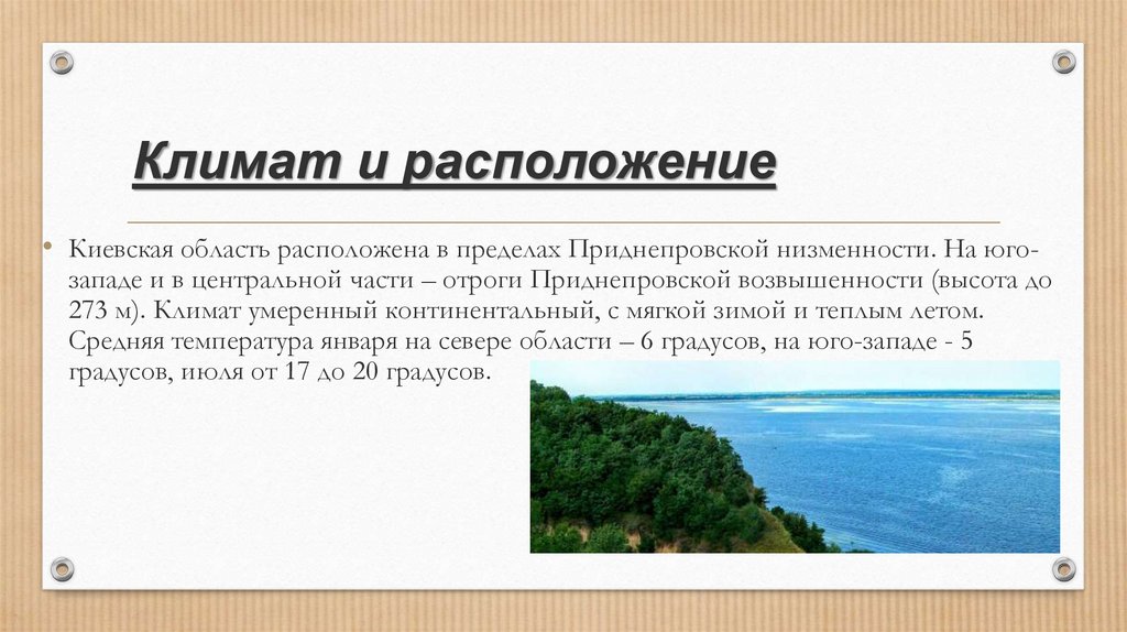 Климат и расположение• Киевская область расположена в пределах Приднепровской низменности. На юго-