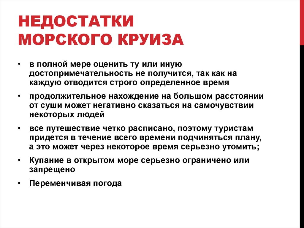 НЕДОСТАТКИМОРСКОГО КРУИЗА