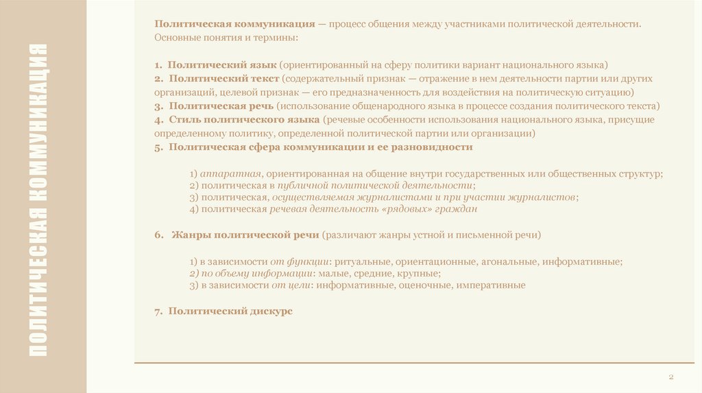 1. Политический язык (ориентированный на сферу политики вариант национального языка)