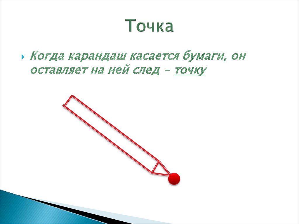 Когда карандаш касается бумаги, оноставляет на ней след - точку