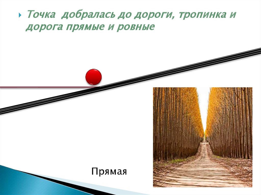 Точка добралась до дороги, тропинка идорога прямые и ровные