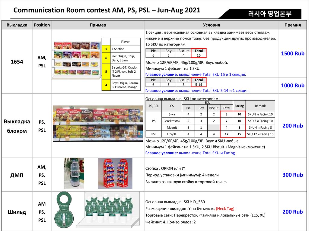 - Минимально 1 фейсинг на каждое SKU;