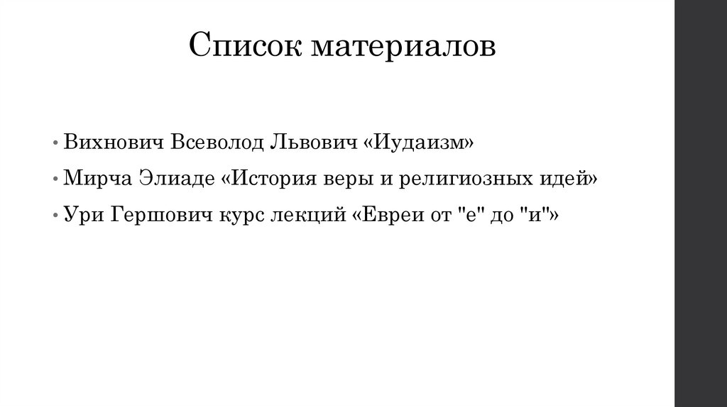 Список материалов• Вихнович