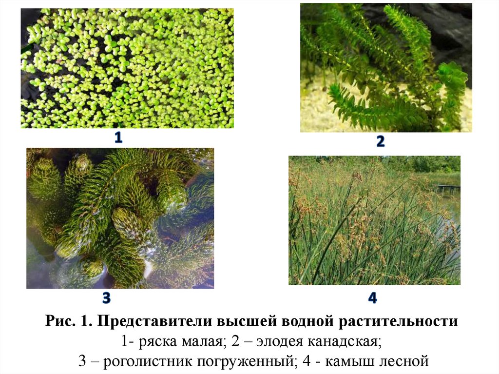 Рис. 1. Представители высшей водной растительности1- ряска малая; 2 – элодея канадская;