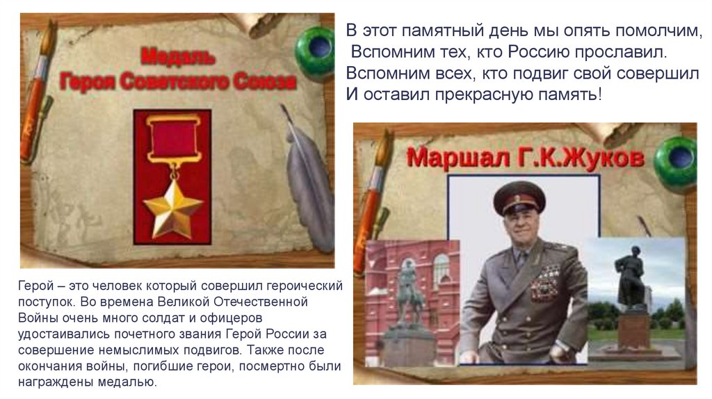 В этот памятный день мы опять помолчим,Вспомним тех, кто Россию прославил.