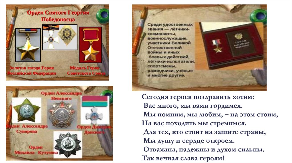 Сегодня героев поздравить хотим:Вас много, мы вами гордимся.