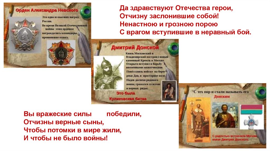 Да здравствуют Отечества герои,Отчизну заслонившие собой!