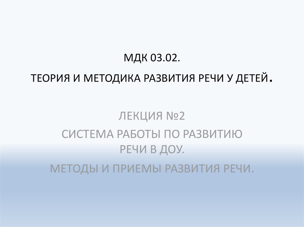 МДК 03.02.ТЕОРИЯ И МЕТОДИКА РАЗВИТИЯ РЕЧИ У ДЕТЕЙ.
