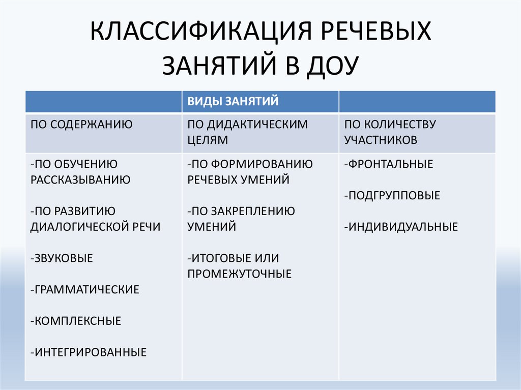 КЛАССИФИКАЦИЯ РЕЧЕВЫХЗАНЯТИЙ В ДОУ