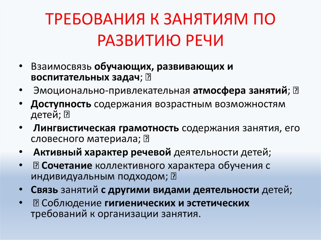 ТРЕБОВАНИЯ К ЗАНЯТИЯМ ПОРАЗВИТИЮ РЕЧИ