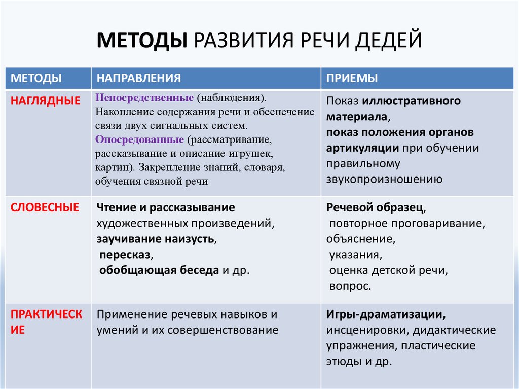 МЕТОДЫ РАЗВИТИЯ РЕЧИ ДЕДЕЙМЕТОДЫ