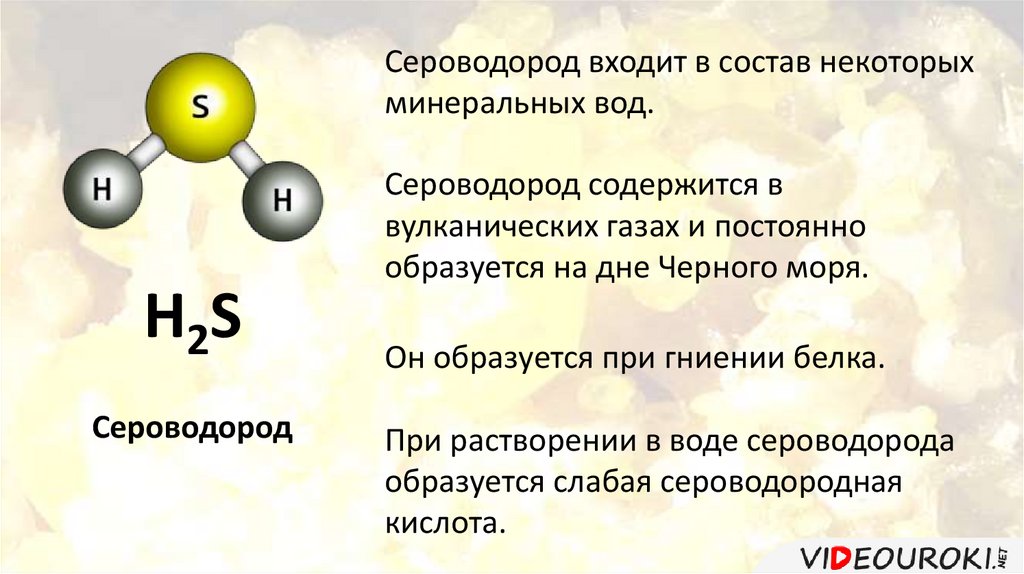 Сероводород входит в состав некоторыхминеральных вод.